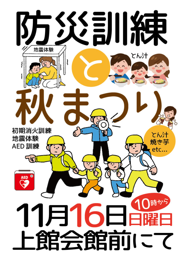 と同時に秋まつりとして、防災用のアルファ化米の試食やとん汁や焼き芋などもご用意していますので
